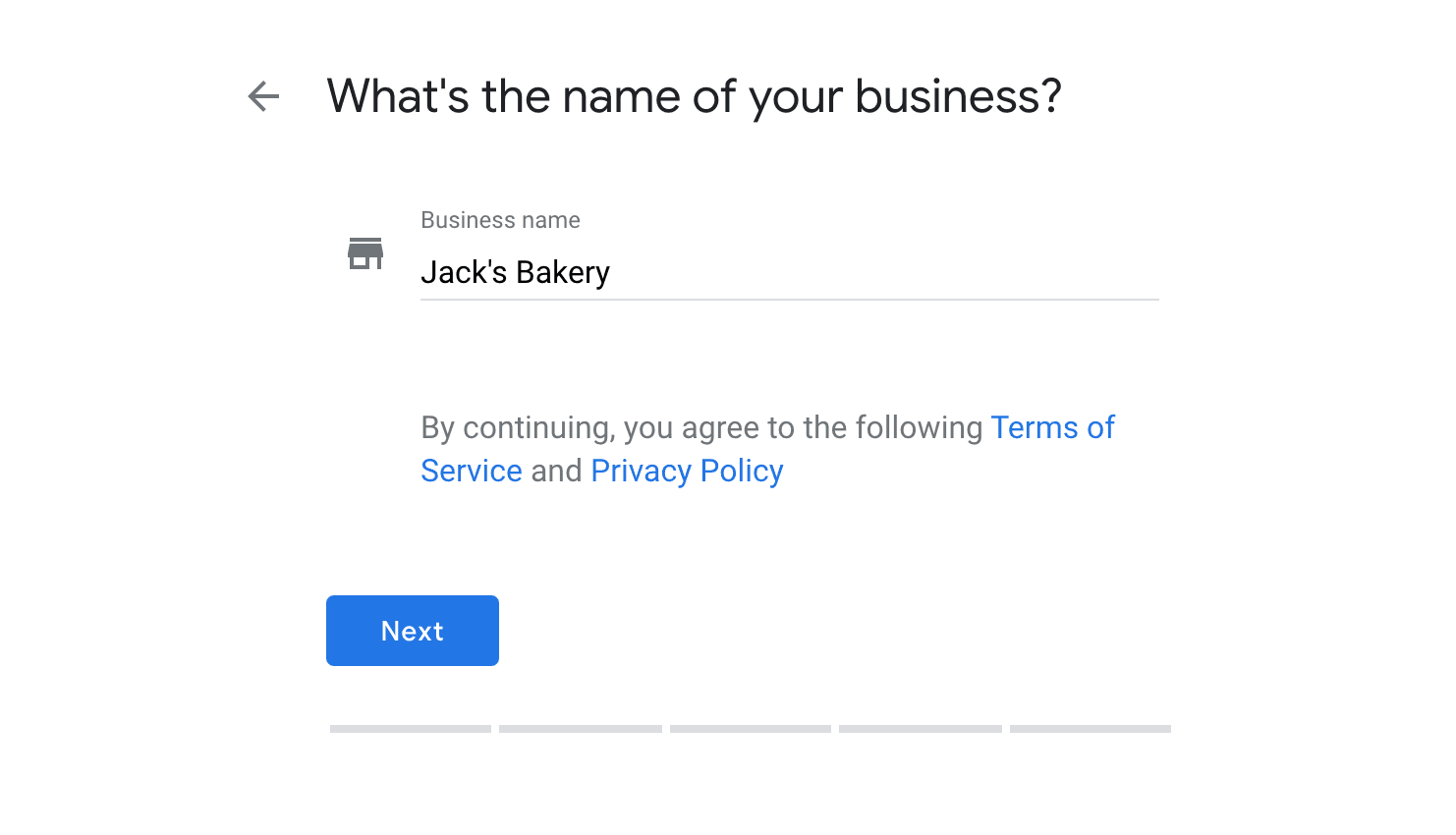 Once you’re signed in, you’ll see a page prompting you for your business name.