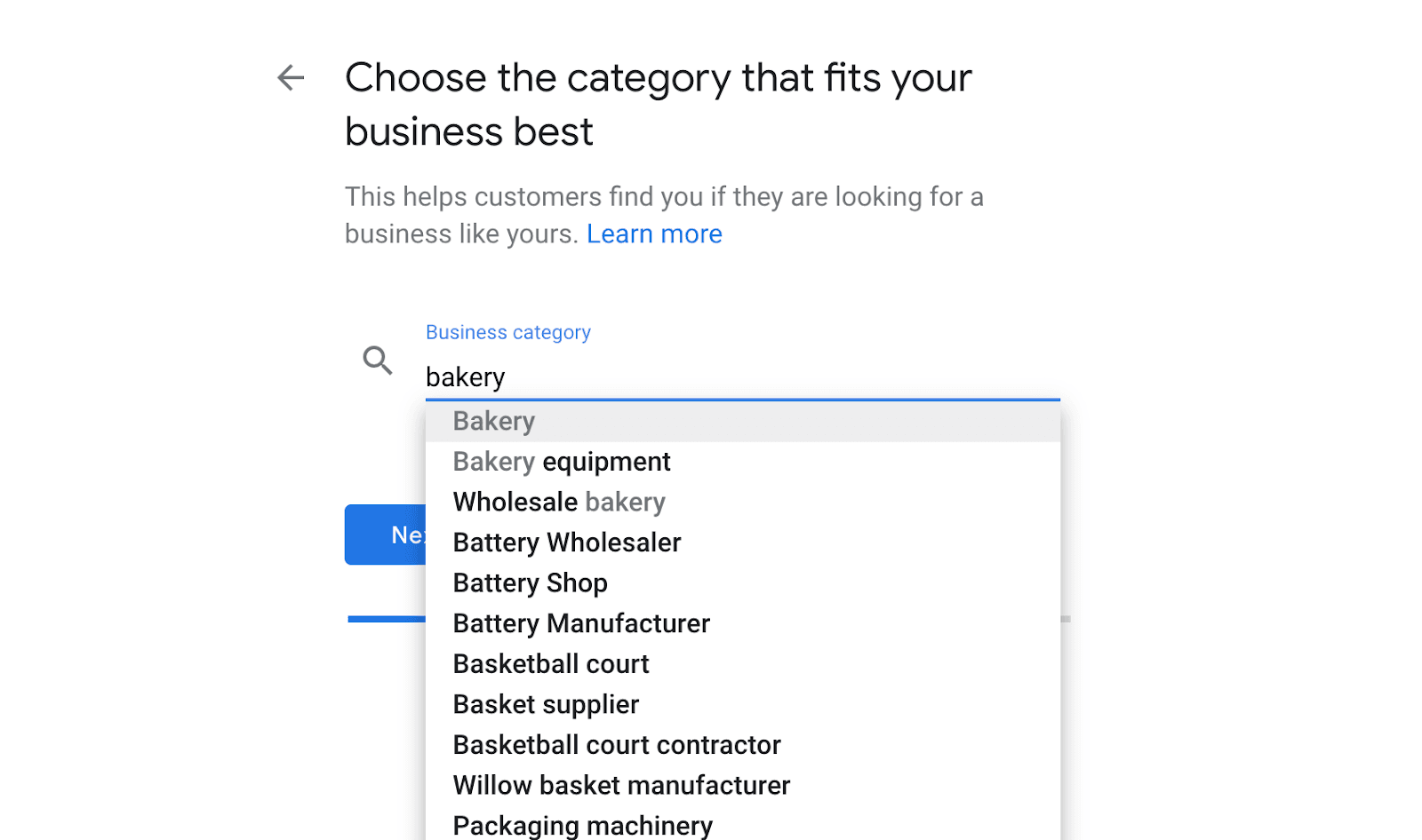 Next, Google will ask you to choose a category that your business fits into. Think of the category that your customers would most expect you to be in.